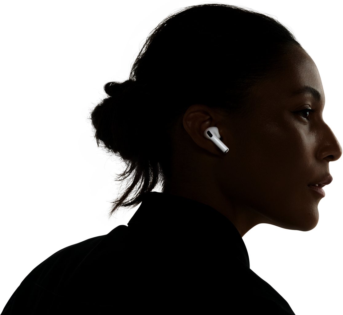 Adaptive EQ tunes music to your ears in real time based on the fit of your AirPods. Inward-facing microphones measure what you’re hearing, then adjust the low to high frequencies of a song — so you get consistently detailed playback, every time.