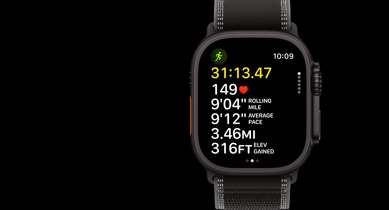 Ultra 3 has a Hiking workout that lets you track your pace, distance, elevation gain, and calories burned. See how high you’ve climbed in real time, and get your total elevation gain when you’re finished. Sky’s the limit.