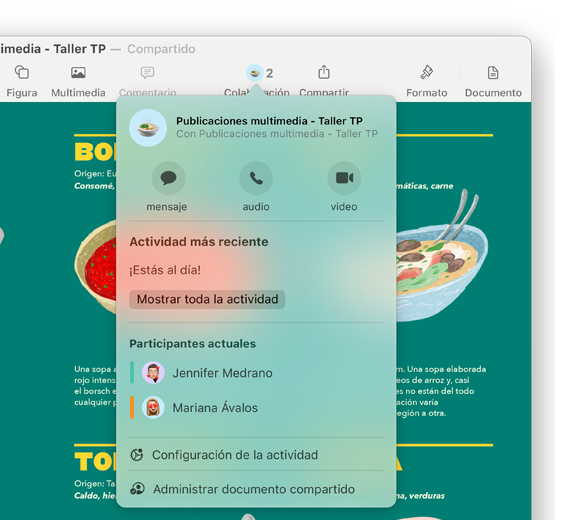 Colabora y comparte fácilmente archivos, carpetas, documentos y mucho más aunque estés de aquí para allá. Sólo tienes que enviar un enlace privado y configurar los ajustes si quieres que los demás vean, compartan o editen el contenido. Y gracias a las actualizaciones en vivo, podrás ver las modificaciones que se vayan haciendo en tiempo real.