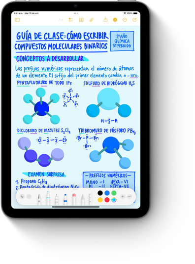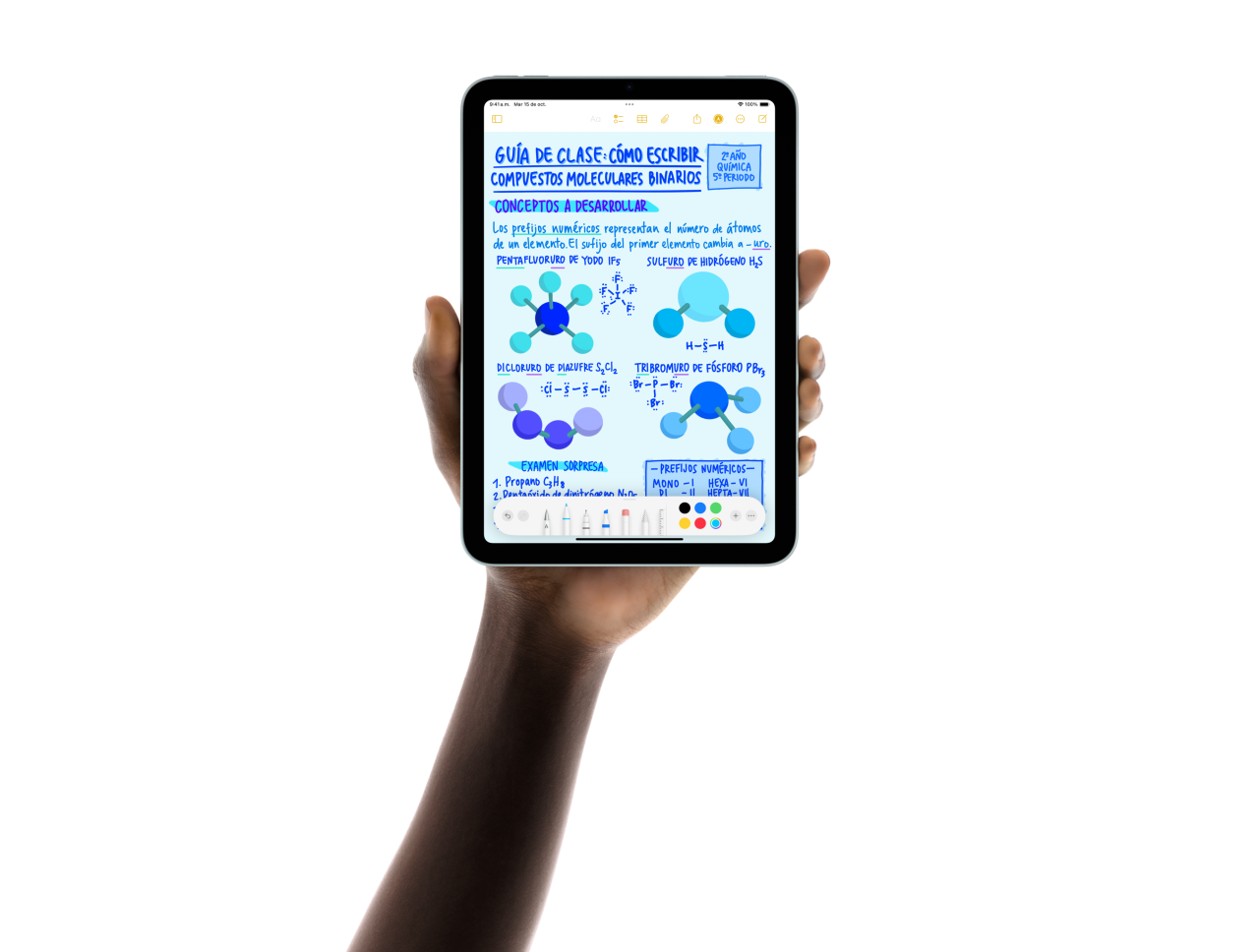 iPadOS hace que el iPad mini sea aún más versátil. Personaliza la pantalla de inicio, estiliza tu caligrafía con Escritura Inteligente y usa el Apple Pencil para calcular expresiones y crear gráficos en Notas Matemáticas.