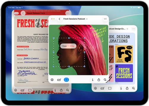 Uspořádej si okna švihnutím doleva nebo doprava. Obrazovku iPadu si teď můžeš rozdělit i na třetiny nebo čtvrtiny.