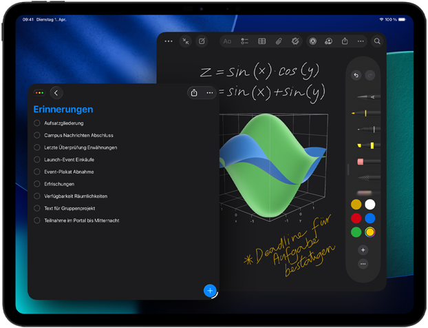 iPadOS 26 bringt ein beeindruckendes neues Design mit Liquid Glass und grundlegende Verbesserungen, die die Produktivität des iPad Pro auf ein neues Niveau heben. Ein überarbeitetes, intuitives Fenstersystem gibt dir mehr Möglichkeiten und Flexibilität als je zuvor. Du kannst Pro Apps nutzen, anspruchsvolle Games spielen und kreative Projekte jeder Größe erledigen – alles per Touch.
