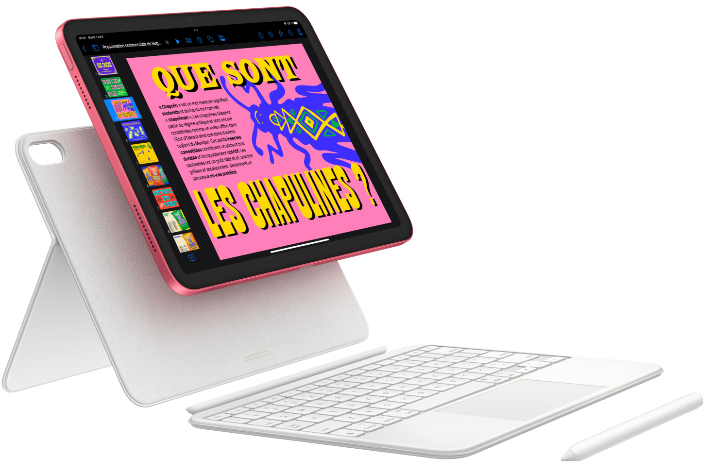 Avec les accessoires essentiels conçus spécialement pour iPad, tout devient possible. Faites des merveilles avec l’Apple Pencil et le Magic Keyboard Folio. Choisissez un Smart Folio coloré pour protéger l’avant et l’arrière de votre appareil. Et connectez-vous à des disques durs, des docks ou encore des écrans grâce au port USB‑C2.