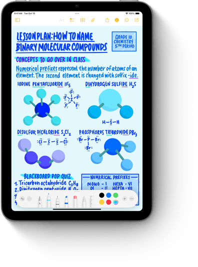 Apple Pencil Pro bisa merasakan ketika Anda menekannya, lalu memperlihatkan palet, sehingga Anda bisa berganti alat, tebal garis, dan warna dengan cepat.