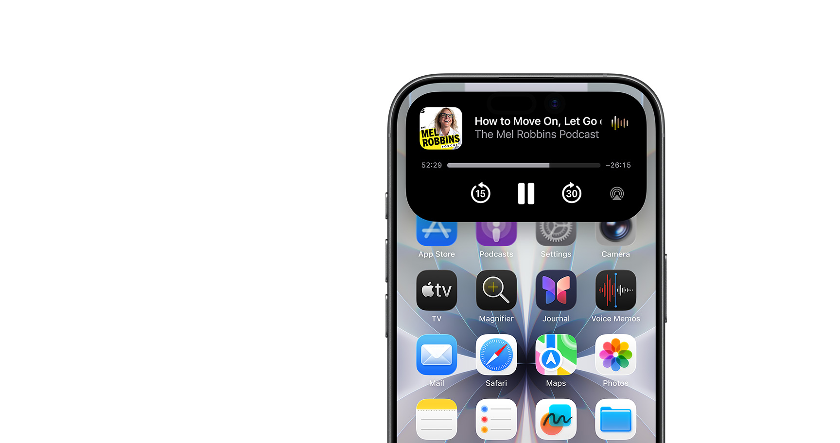 Dynamic Island. Aktivitas Langsung dan pemberitahuan tampil lebih seru.