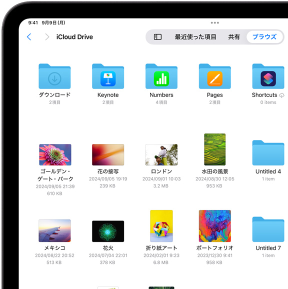 iCloud Driveの中に保存したファイルとフォルダには、どのデバイスを使っていても簡単にたどり着けます。それらを誰かと共有するのも自由自在です。iOS上とiPadOS上のファイルアプリ、Mac上のFinder、Windowsパソコン用のFile Explorer、またはiCloud.comから、あなたのすてのファイルとフォルダにアクセスできます。