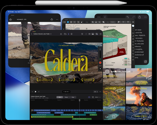Filmuok, redaguok ir dalinkis – viskas viename įrenginyje su profesionalia kamerų sistema ir „LiDAR“ skeneriu, studijos lygio mikrofonais ir keturiais garsiakalbiais. Filmuok 4K „ProRes“ formatu, įrašyk tinklalaidę ir pasirink tinkamą mikrofoną kiekvienai programai – išnaudok įvesties parinkiklį.