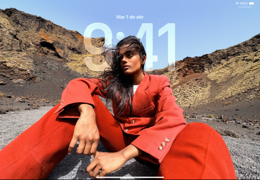 La hora se adapta a tu foto de fondo y a las notificaciones, manteniendo siempre el enfoque en el sujeto. Al mover tu iPad, la foto cobra vida gracias a un nuevo efecto 3D.3