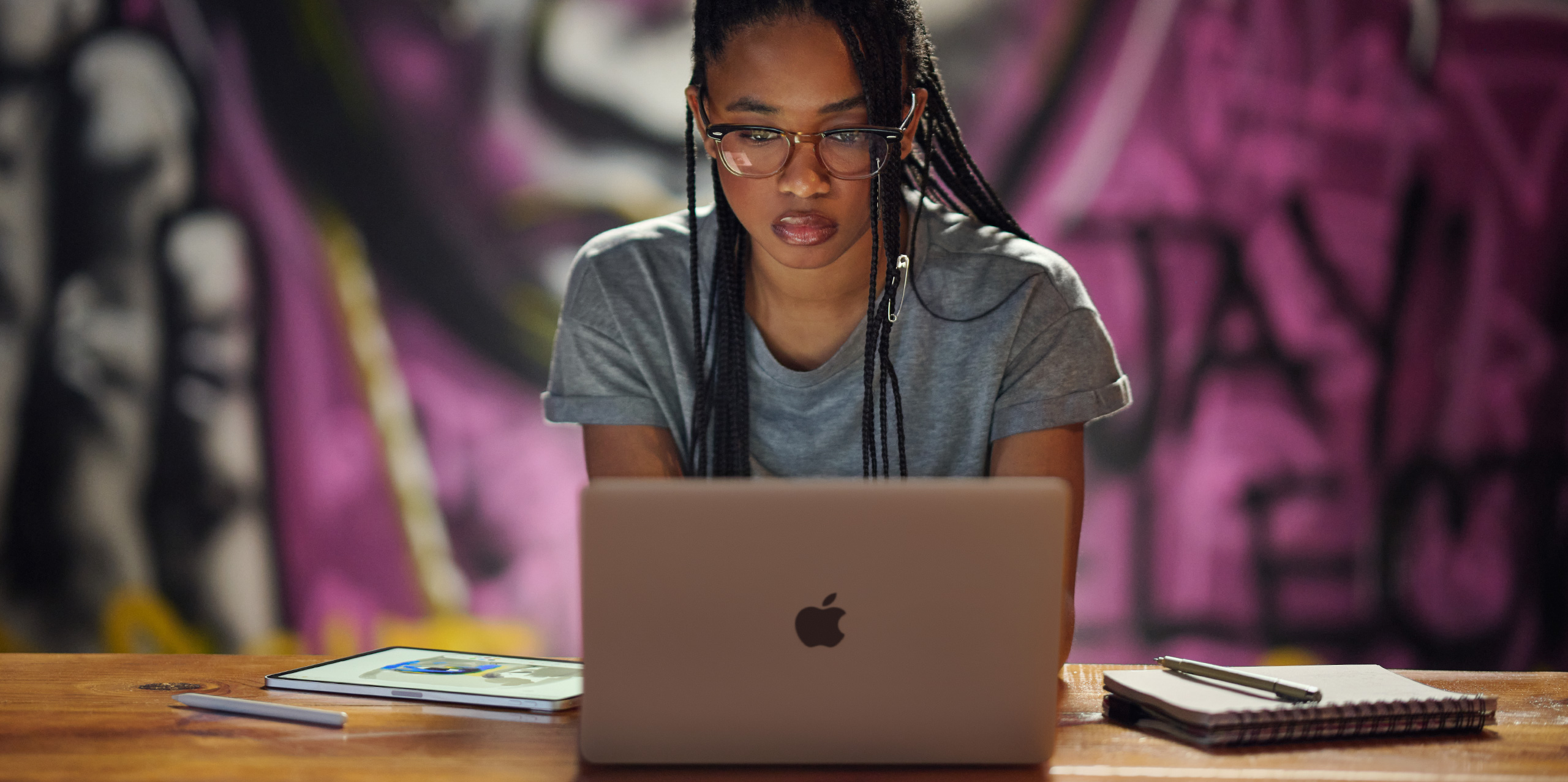 I arbeidet med Beats Black Creators Program – som samler studenter fra tradisjonelt svarte læresteder i USA for å samarbeide om en film – brukte hun arbeidsflyten hun liker best på Mac, blant annet Celtx Script-appen til skrivingen, Pitch-appen til bearbeidingen og Notater på iPad til produksjonen. «Når jeg er kreativ, handler det i hovedsak om å være organisert. Apples produkter effektiviserer den kreative prosessen», sier Miya.