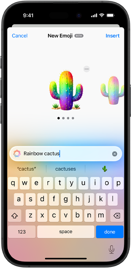 Create your own Genmoji to express yourself in ways that are personal to you. Type a description, or mix your favourite emoji to create something new. For Genmoji inspired by family and friends, choose from options like customising hairstyle to match your friend’s latest look.