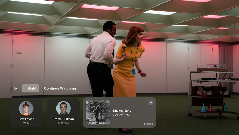 Na ekranie. Wyświetlaj informacje na temat seriali i filmów Apple Original podczas ich oglądania. Wystarczy włączyć sterowanie odtwarzaniem, żeby dowiedzieć się więcej o aktorach czy muzyce. Przy zmianie scen informacje automatycznie się aktualizują. A kiedy używasz iPhone’a jako pilota do Apple TV, informacje z funkcji Na ekranie masz dosłownie na dłoni5.