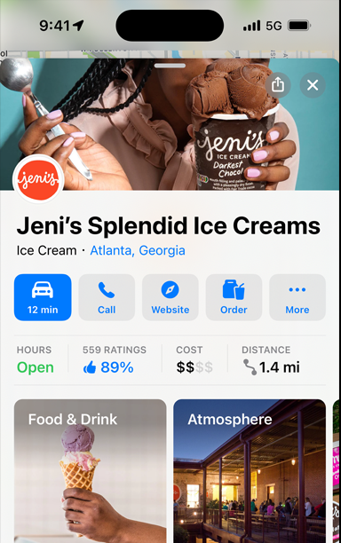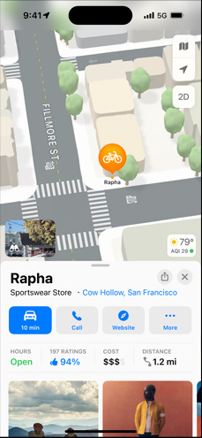Apple Business Connect ułatwia klientom znalezienie Twojej firmy w apce Mapy. Od Ciebie zależy, co w niej zobaczą. Utwórz wizytówkę, która będzie dostępna na całym świecie dla wszystkich użytkowników urządzeń i apek Apple. Wzbogaconą o wskazówki dojazdu, dane kontaktowe i przydatne opcje.