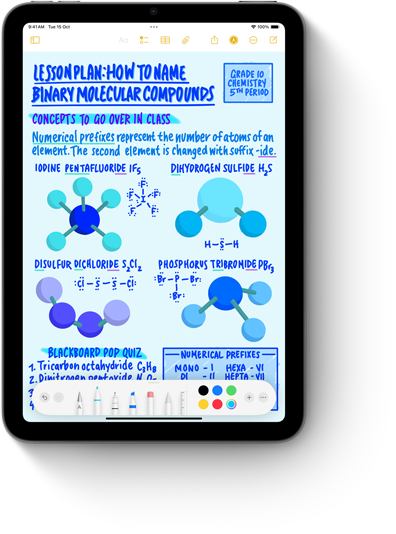 Apple Pencil Pro can sense when you squeeze it and brings up a palette, so you can quickly switch tools, line weights, and colors.