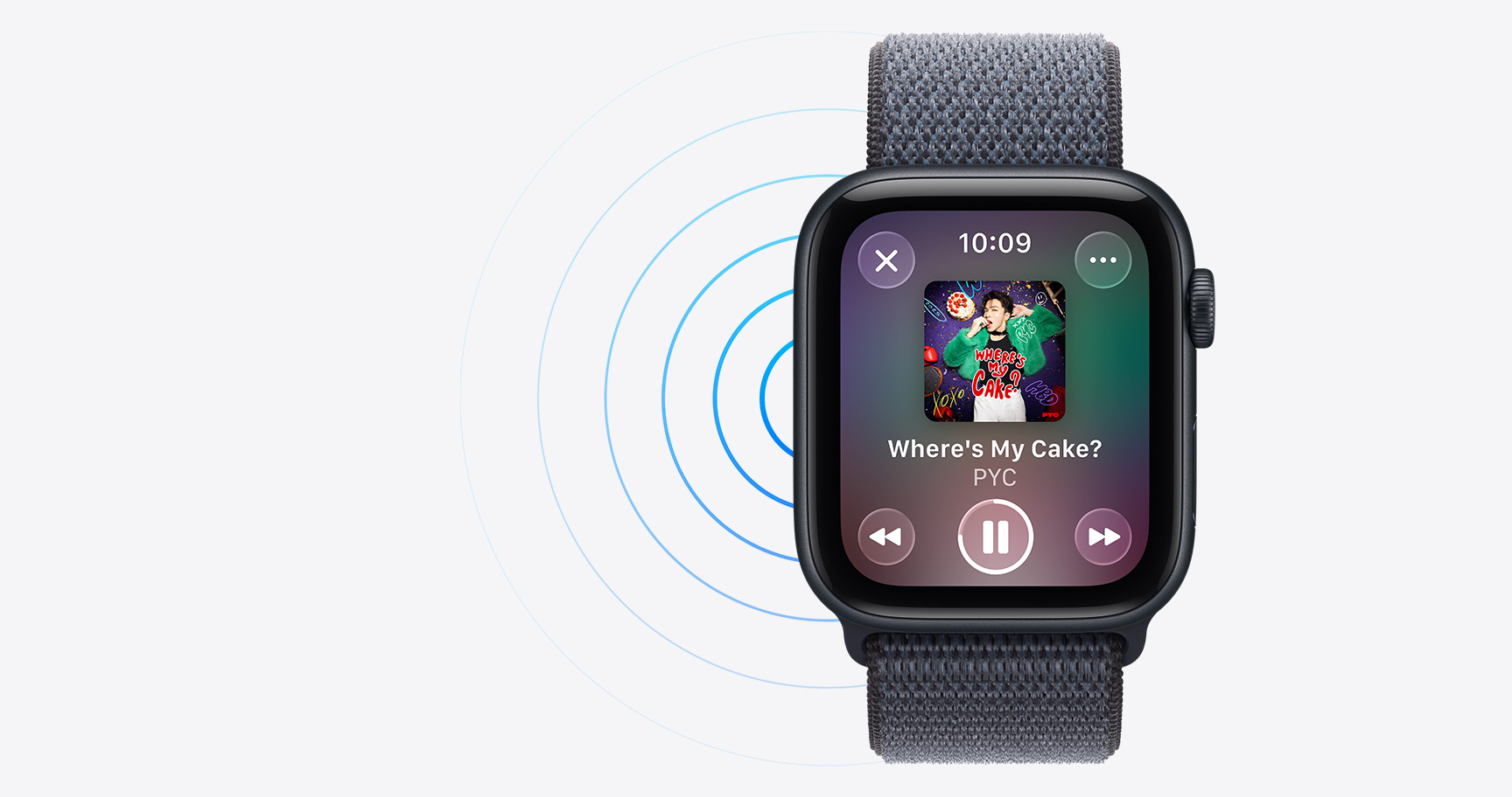 สามารถ เชื่อมต่อกับ AirPods ได้ อย่างราบรื่น คุณจึง ฟังเพลงหรือ พ็อดคาสท์ ได้ง่ายๆ6 แบบ ไม่ต้องคอย หยิบจับ แต่ถ้าคุณไม่มี AirPods อยู่ใกล้ๆ ก็ เล่นเสียงสื่อผ่าน ลำโพง นาฬิกา ได้เลย