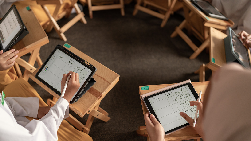 นักเรียนได้ใช้ iPad และ Apple Pencil เพื่อเขียนเรื่องค่านิยมวัฒนธรรม และประสบการณ์ของศาสนาอิสลามในภาษาอาหรับ และแชร์ความคิดนั้นผ่านหนังสือนิทานดิจิทัลนอกจากนี้นักเรียนทุกคนยังได้เรียนและฝึกฝนการพูดในที่สาธารณะโดยการบอกเล่าเรื่องราวของตัวเองใน Keynote และแชร์กับเพื่อนร่วมชั้นทาง Apple TV แล้วพวกเขายังได้ใช้ iPad กับกิจกรรมที่เกี่ยวกับการออกแบบเป็นประจำอาทิการประกวดออกแบบชุดนักเรียนใหม่ที่เพิ่งจัดขึ้นเมื่อไม่นานมานี้
