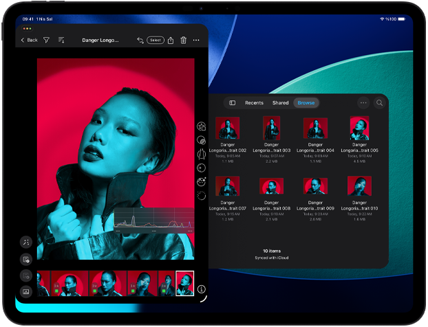 Düzeltme aracını kullanarak fotoğraflarınızda olmasını istemediğiniz dikkat dağıtıcı unsurları anında kaldırabiliyorsunuz. Nesneyi belirleyin ve tek dokunuşla kaldırın. Veya daha da hassas düzenlemeler yapmak için Apple Pencil’ınızı kullanın.9
